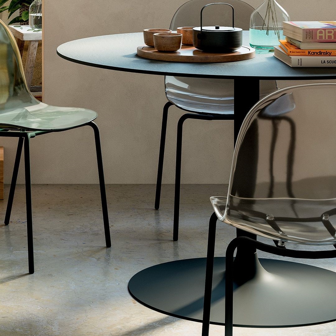 Seats 5. PLANET model table with central pedestal base. Round top. PLANET is a table with a central pedestal base with weighted metal plate, which guarantees maximum stability. The round top is available in tempered glass or in wood. Comfort is ensured for all the diners…even when they are in an odd number! PLANET is a modern and elegant table perfect for the kitchen and the dining room. Design: Connubia for Calligaris