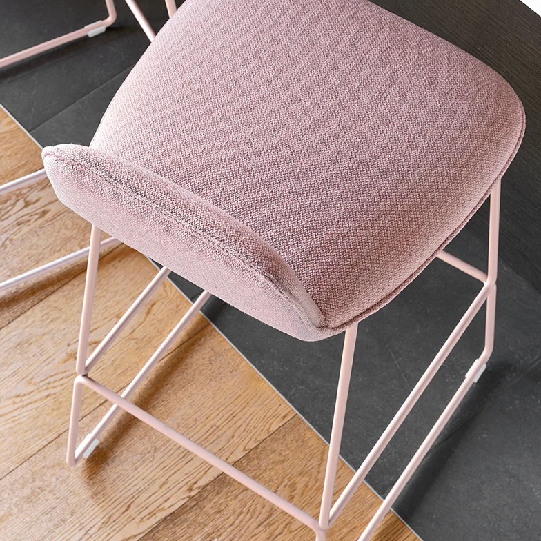 RILEY SOFT counter stool in metal with a metal-rod base. Chair seats with various options for materials and finishes. Design: Connubia for Calligaris